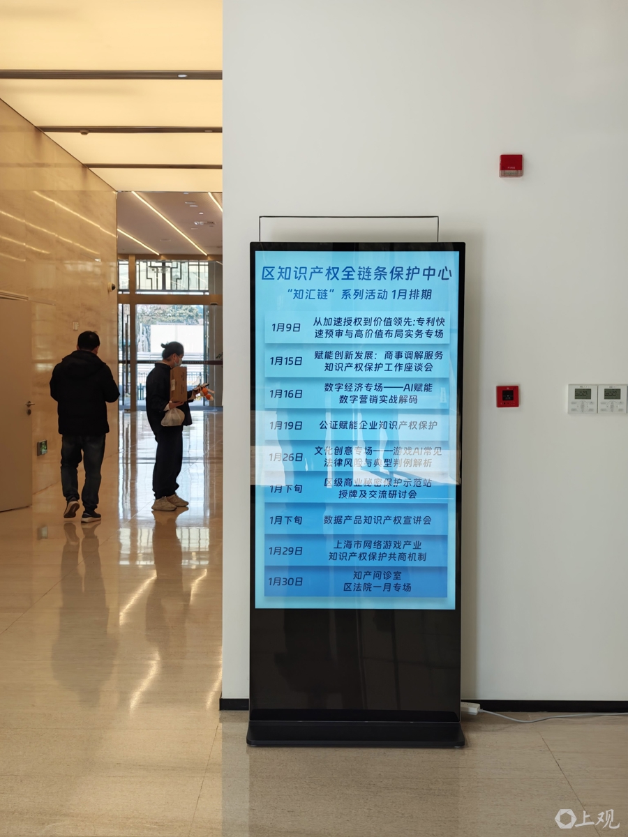 1月15日,徐汇区知识产权纠纷调解工作站在区知识产权全链条保护中心正式揭牌。目前,该保护中心已集聚徐汇区法院、区检察院等9家单位和9个功能站点,构建知识产权“一站式”综合服务体系。
